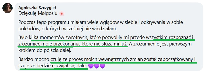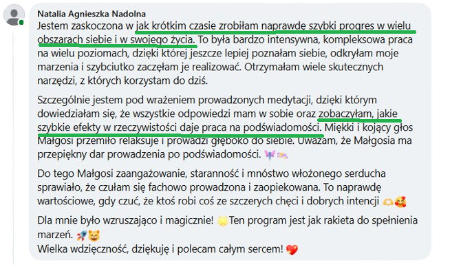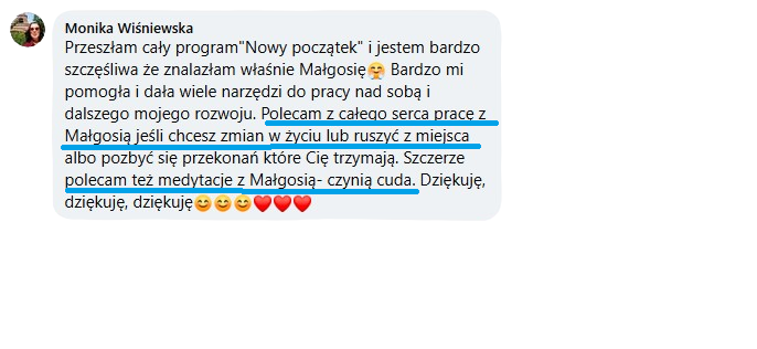 Szczerze polecam też medytacje z Małgosią – czynią cuda.
